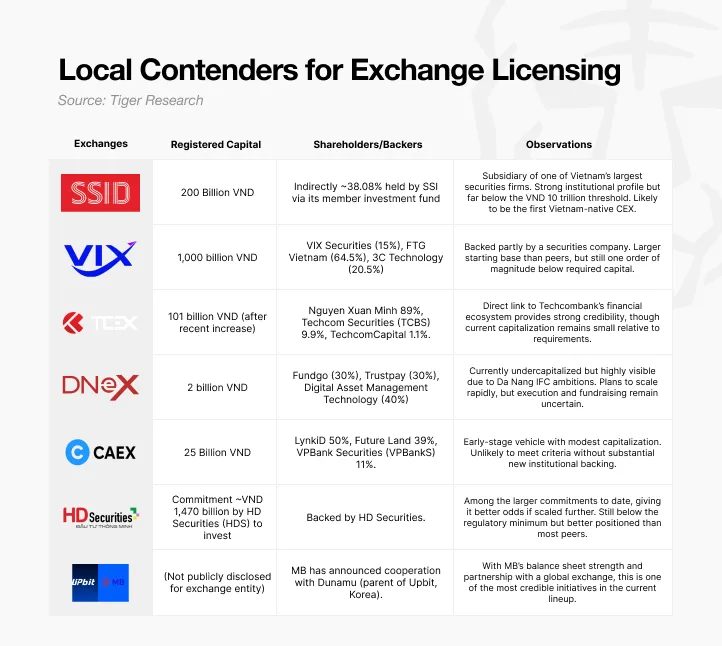 إن الإطار التنظيمي الجديد في فيتنام يضع عوائق دخول عالية جداً، حيث إنه من المتوقع أن تصل فقط البنوك الكبيرة، وشركات证券، أو التبادلات العالمية التي تتمتع بشركاء أقوياء إلى المعايير المطلوبة.