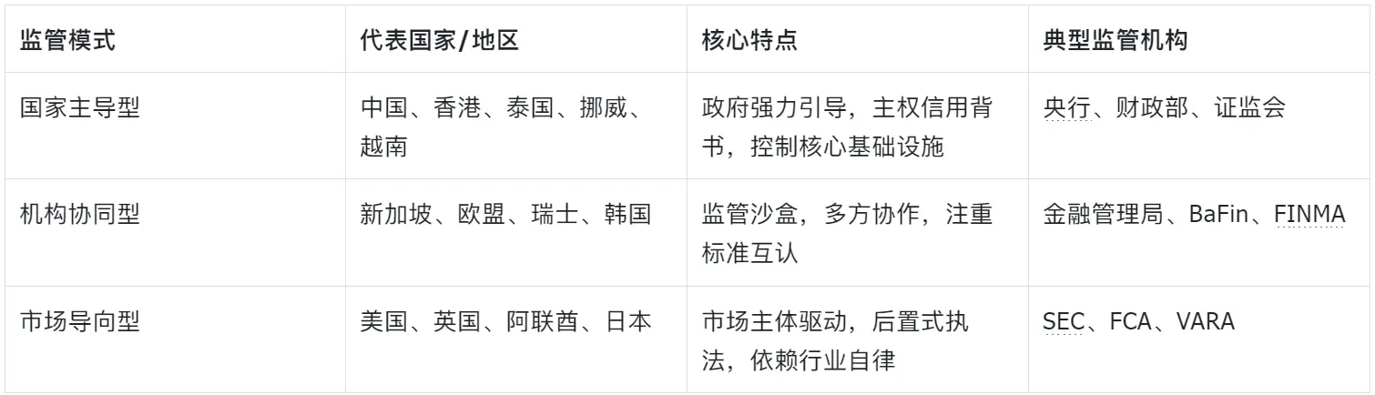 إن ترميز الأصول (RWA) في العالم الحقيقي كأحد المجالات الرئيسية لدمج تكنولوجيا البلوك تشين مع TradFi، يجذب اهتمامًا واسعًا من قبل الهيئات التنظيمية العالمية. وفقًا للبيئة الاقتصادية لكل دولة، وخصائص الأسواق المالية، وفلسفة التنظيم، فإن الهيكل التنظيمي العالمي الحالي للأصول الرقمية (RWA) قد شكل ثلاثة أنماط متميزة: النمط المدعوم من الدولة، والنمط التعاوني المؤسسي، والنمط الموجه من السوق. تعكس هذه الأنماط التوازنات المختلفة بين دفع الابتكار والحفاظ على الاستقرار المالي في الولايات القضائية المختلفة.