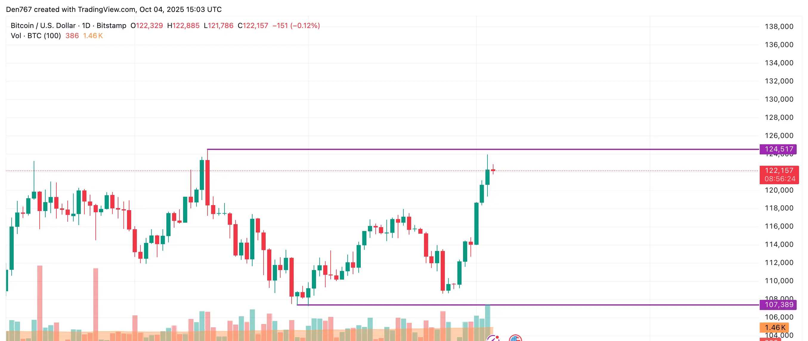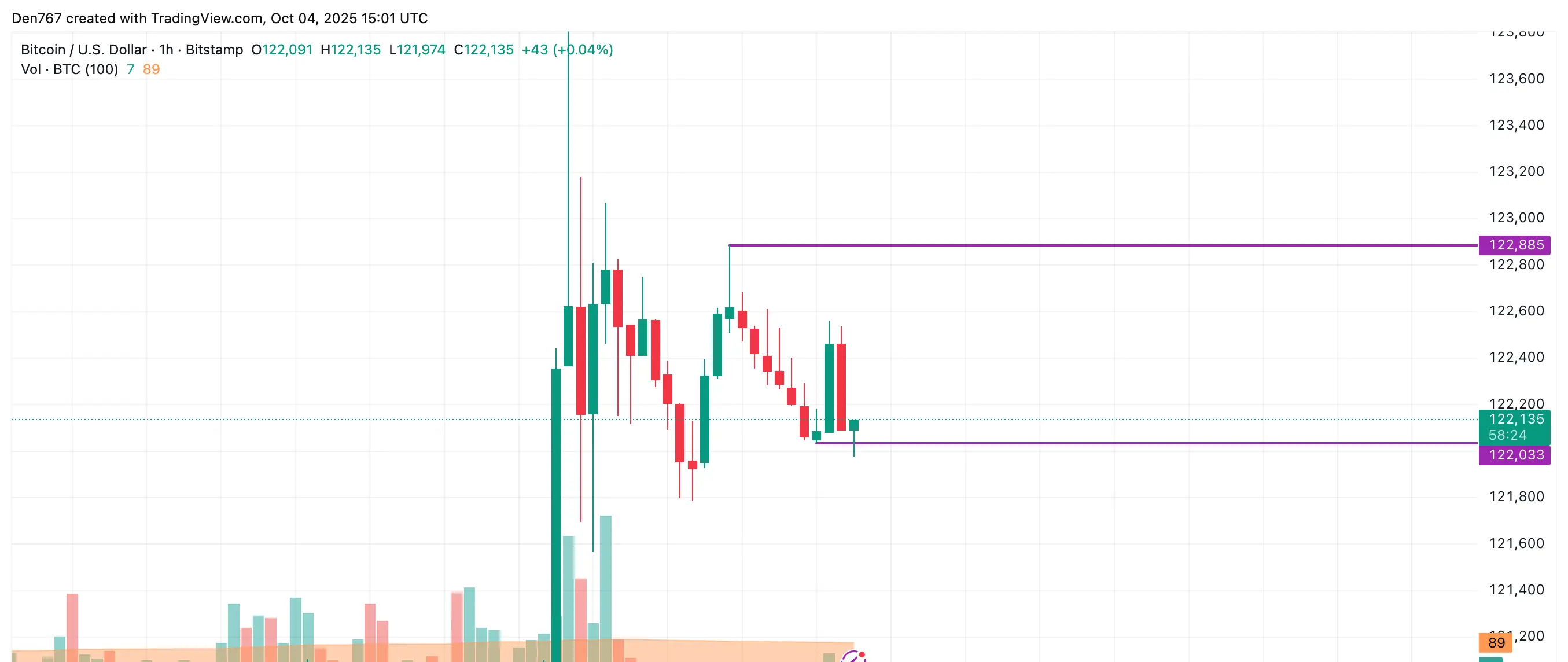 على الرغم من نمو اليوم، فإن سعر BTC قريب من الدعم المحلي عند $122,033. إذا لم يتمكن الدببة من استغلال المبادرة، فقد يتوقع المتداولون مزيدًا من التراجع إلى مستوى $121,500. ! صورة المقال