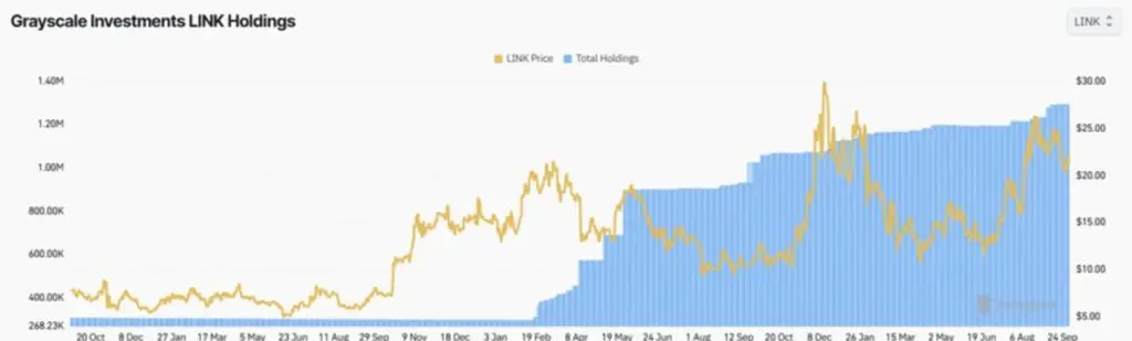 في أوائل سبتمبر، قدمت Grayscale طلبًا لصندوق ETF الفوري لـ LINK في الولايات المتحدة. تسعى إدارة الأصول للحصول على موافقة من SEC لتحويل منتج Chainlink Trust الحالي إلى صندوق متداول في البورصة (ETF) ومدرج في NYSE Arca تحت رمز السهم GLNK.