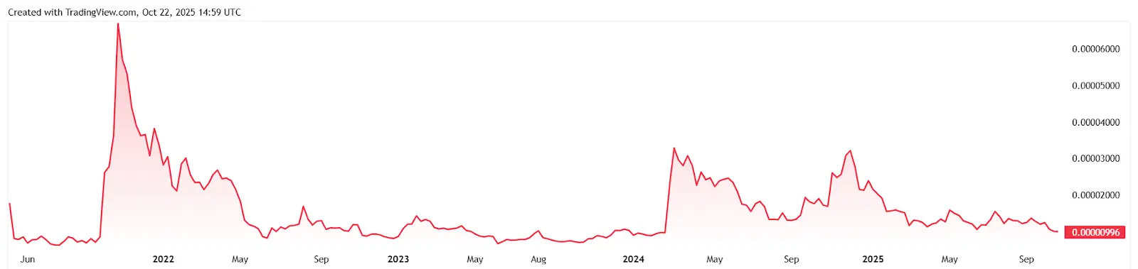 يواجه كل من SHIB و PEPE عقبة مماثلة: إمدادات ضخمة من الرموز ورؤوس أموال سوق مبالغ فيها. مع التقييمات في نطاق عدة مليارات، من الصعب رياضيًا على أي من الأصول تكرار الارتفاعات المبكرة بنسبة 100x التي جذبت انتباه التجزئة في الماضي. والأهم من ذلك، أن كلاهما لا يزال مدفوعًا إلى حد كبير بالمشاعر؛ بينما لديهما مجتمعات نشطة، لم يحقق أي منهما نموذج فائدة داخل السلسلة قوي يولد طلبًا مستدامًا على الرموز.