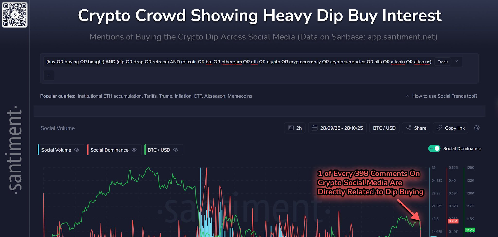 تحليل بيانات Santiment يكشف أن ألم سوق العملات المشفرة في المدى المتوسط قد لا يكون قد انتهى. أدت انخفاضات طفيفة في السوق يوم الثلاثاء إلى تصفية أكثر من $512 مليون من التداولات المرفوعة. استجابةً لذلك، تظهر بيانات Santiment الآن مستوى عالٍ من الاهتمام بين الجمهور لـ “شراء الانخفاض.”