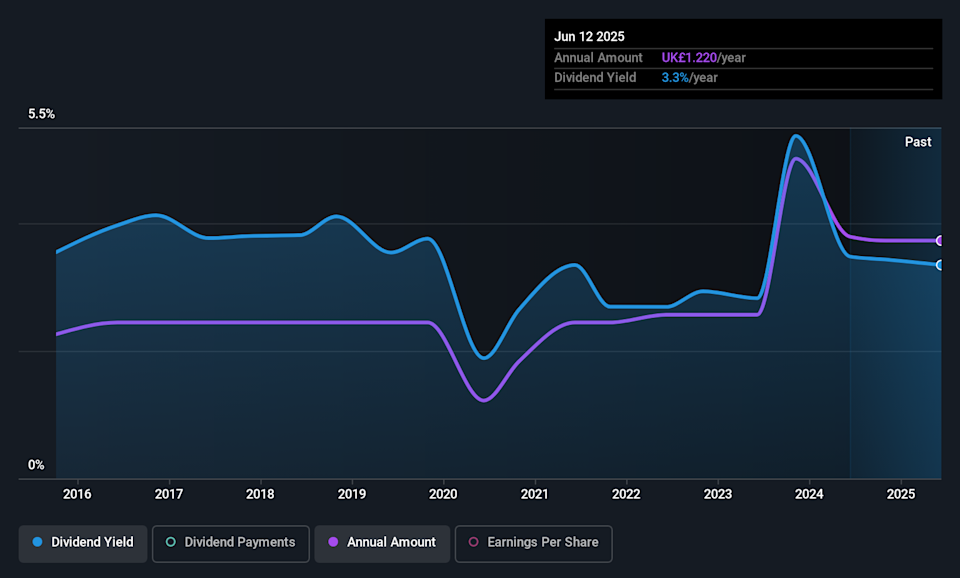 تقدم أمان لندن عائد أرباح بنسبة 3.46%، وهو أقل من أعلى 25% من دافعي الأرباح في المملكة المتحدة. يشير نسبة السعر إلى الأرباح البالغة 16.5 مرة إلى تقييم معقول مقارنة بالسوق البريطاني الأوسع. تغطي الأرباح بشكل مستدام من خلال الأرباح النقدية والتدفقات النقدية، مع نسب توزيع أرباح تبلغ 57.3% و59.2% على التوالي، على الرغم من أن الأرباح كانت متقلبة خلال العقد الماضي على الرغم من النمو العام في المدفوعات.