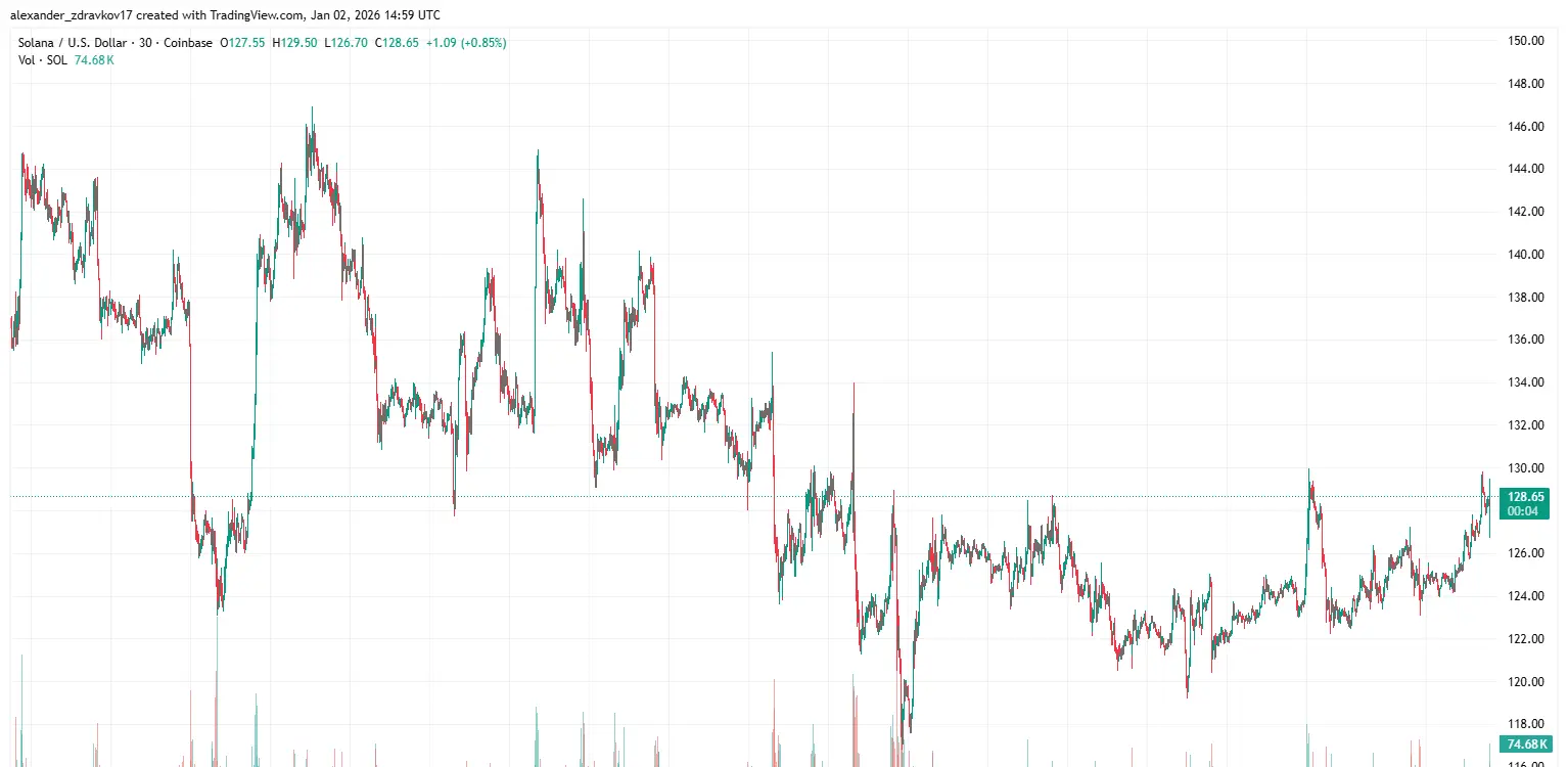 A pesar de las condiciones mixtas en el mercado cripto en general, la acción del precio de Solana ha mostrado una resiliencia relativa. Al momento de escribir, SOL cotiza cerca de $128.7, registrando ganancias en plazos cortos y medianos, incluyendo un avance semanal de más del 5%.
