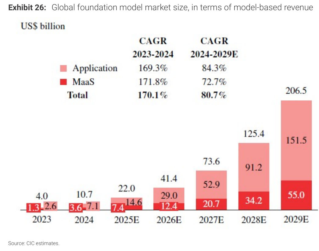 En un escenario donde el mercado global de modelos base se espera que pase de 10.7 mil millones de dólares en 2024 a 206.5 mil millones en 2029 (CAGR 80.7%), la participación de mercado actual de la compañía es solo alrededor del 0.3%. Con solo un pequeño aumento en la cuota, la elasticidad de ingresos se hará evidente.