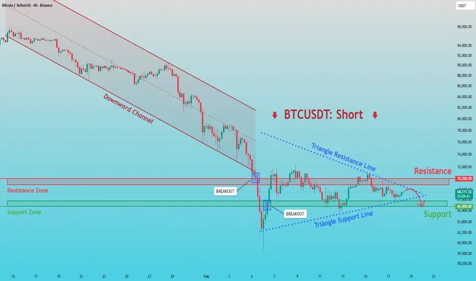 BTCUSDT : Enroulement en vue d'un mouvement - Biais baissier tant que inférieur à 70K