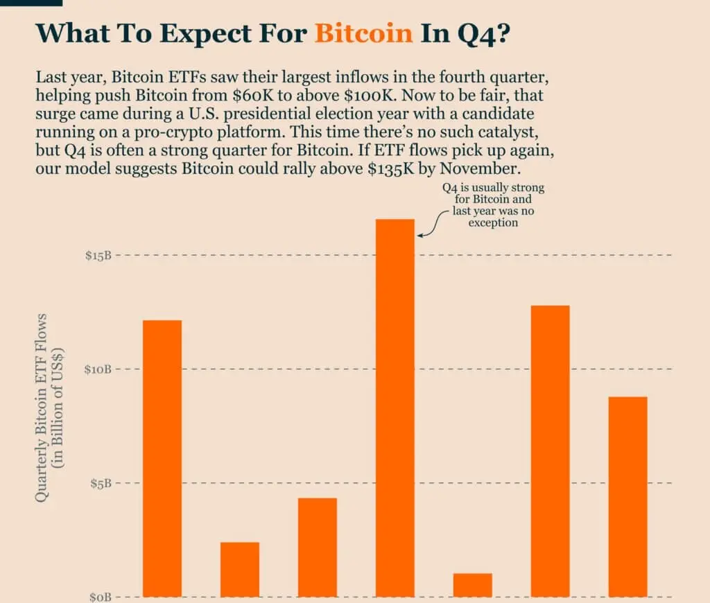 Seperti yang diamati, Q4 secara historis bullish untuk Bitcoin. Penyeimbangan portofolio di akhir tahun, cek bonus yang mencari imbal hasil, lembaga yang berlomba-lomba untuk mendahului pengumuman pemotongan suku bunga atau stimulus terbaru.