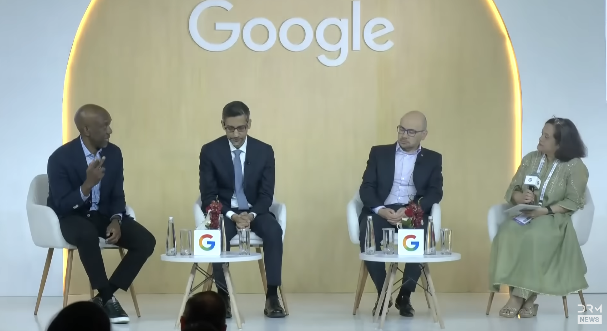 Selamat sore semuanya. Sundar, Demis, James, kalian tahu, duduk bersama kalian bertiga, rasanya seperti saya sedang menyaksikan nirwana AI. Seperti tiga dewa AI berkumpul. Sangat luar biasa. Dan saat kalian datang ke India, tepat saat gelombang AI menyapu seluruh negara. Saat kalian mengikuti Konferensi AI di India, apa hal yang paling kalian nantikan? Saya ingin mulai dengan cepat, jadi dari kalian dulu, Sundar.