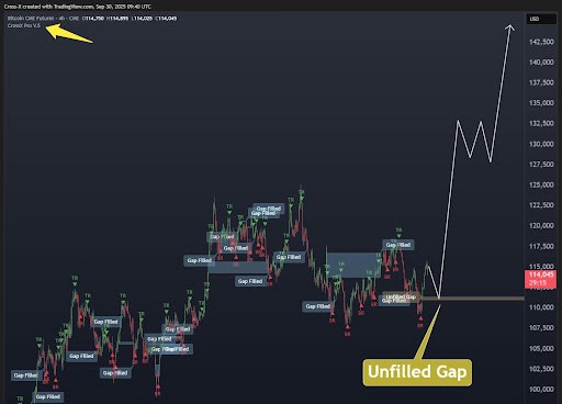 最近のビットコインの技術的状況は、短期的な勢いとマクロ的な必要性の間での綱引きを示しています。ブルたちはサポートを積極的に守り、$117,000の抵抗エリアに向かって押し上げていますが、まだ埋まっていないCMEギャップが市場に影を落としています。この歴史的なパターンは、価格の動きが強気であるにもかかわらず、ターゲットが本当に突破される前にチャートをリセットするために必須の下落が必要であることを示唆しています。次の大きなラリーの前のギャップフィリング-------------------------------------最近の短期市場見通しでは、ビットコインが次の大きなラリーのために勢いを築く前に、既存のギャップを埋める必要があることが説明されました。しかし、そのような動きは弱さとして見るべきではなく、むしろ健全なリセットとして捉えるべきであり、これがより強い上昇のための舞台を整える可能性があります。ビットコインCME先物チャートが参照されており、CrossXインジケーターは価格の動きに対してしばしば磁石のように作用する未充填のギャップを強調しています。歴史的に、ビットコインはこれらのエリアを再訪する傾向を示しており、上昇を再開する前にこれらのエリアを訪れることが多いため、短期的な構造の重要な部分となっています。過去5ヶ月間、すべてのギャップが埋められ、完璧な100%の成功率が維持されていることが確認されました。この一貫性は、次のラリーが始まる前に短期的なリトレースメントが起こる可能性を高め、パターンが維持されるという期待を強化します。それを考慮に入れて、マイナーポイントの後退がより多くのビットコインを蓄積する貴重な機会を生む可能性があると結論づけられました。下落を恐れるのではなく、トレーダーや投資家はそれを次の強い上昇の前のエントリーポイントと見なすかもしれません。ビットコインブルは市場の圧力にもかかわらず回復の勢いを狙う-----------------------------------------------------------最近の更新によると、ビットコインは急激な下落を経験した後、急速に回復しました。価格は一時$113,000の下に落ちましたが、すぐに持ち直しました。このレベルからの迅速な反発は、バイヤーが活発であり、重要なゾーンで介入する意欲があることを示しており、現時点ではさらなる修正を防いでいます。現在、価格は再び上昇しており、直近の課題は114,600ドルと114,800ドルの間の狭い抵抗ゾーンによって定義されています。この範囲は、売り圧力が集中する可能性が高いローカルの天井として機能しています。このレベルを克服することは、強気の動きが継続するために重要です。先を見据えたとき、$114,600~$114,800の抵抗線を上回る成功したブレイクアウトが、$116,000~$117,000のエリア間の大幅な高騰の道を開くことが強調されました。この範囲に入る動きは、ポジティブなモメンタムを固め、最近の下落が単なる短期間のシェイクアウトであったことを確認し、ラリーの継続を可能にします。注目の画像はGetty Images、チャートは Tradingview.com