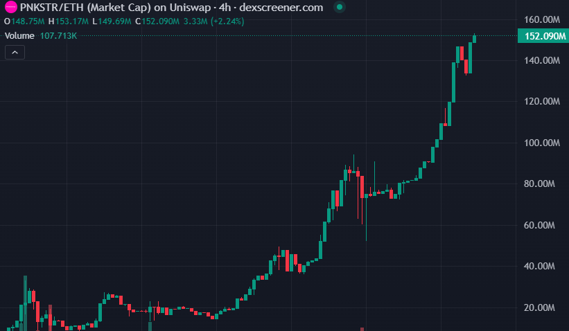 NFTリンクトークンのNFTStrategyエコシステムは、$202 百万の時価総額と1070万ドルのデイリートレーディングボリュームに達しました。データプラットフォームからのデータによると、PunkStrategy (PUNKSTR)が37%の増加を経て、$152 百万でリードしています。PudgyStrategy (PUDGYSTR)は45%の利益を上げ、11.25百万ドルとなりました。この勢いは他のトークンにも波及し、ApeStrategy (APESTR)が29%上昇して8.3百万ドル、ToadzStrategy ($TOADSTR)が20%上昇して3.7百万ドルに達しました。 PNKSTRチャートすべての8つのTokenWorks NFTStrategyトークンは、9月30日に特定のNFTマーケットプレイスに上場されました。このローンチには、資産全体に分配される20 ETHの報酬プールが伴いました。ETHは現在、$4,411で取引されており、当日2.4%上昇しています。このローンチは、TokenWorksのようなプロジェクトがNFT市場に流動性、報酬、自動化された戦略を導入する革新的な方法を模索する中で、NFTと分散型金融(DeFi)の融合が進んでいることを強調しています。これは、広範なNFT市場が、2022年4月の約$17 億ドルの市場資本のピークを大きく下回り、以前の年に経験した勢いを取り戻すのに苦労している中でのことです。それでも、このセクターは今年反発し、4月の約$3 億ドルから今日の62億ドルに市場資本が2倍以上になりました。過去24時間で、世界中のNFTの総売上高は1830万ドルに達し、データプラットフォームによると、日次で48%の増加を記録しました。TokenWorksの起動-----------------TokenWorksはNFTStrategyを「すべてのNFTコレクションのための永続的なマシン」として紹介し、誰でもトークンを立ち上げることができ、同時にNFTクリエイターやアーティストに価値を還元するように設計されています。チームはまた、各NFTStrategyトークンはPNKSTRをサポートするために構築されたことを説明しました。「PunkStrategyはアートプロジェクトとして始まり、全く新しいトークンメタに変わりました」と、チームはソーシャルメディアプラットフォームの投稿で書きました。「フォークされる運命にあり、私たちは買い手にとって無許可で安全な状態で自分のものを立ち上げる方法を作るべきだと感じました。」各NFTコレクションは1つのNFTStrategyトークンを持つことができ、トークンの取引から得られる手数料は、そのコレクションからNFTを購入するプールに割り当てられ、購入価格の1.2倍で再リストされます。NFTが売却されると、その売上のETHは対応するNFTStrategyトークンを購入して焼却するために使用されます。このプロセスは「永遠に」続くとチームは述べました。現在、PNKSTRは10%の取引手数料を請求しており、そのうち8%がNFT蓄積プールに、1%がTokenWorksのサポーターに、1%がTokenWorksチームに割り当てられています。一方、他のNFTStrategyトークンは8%をNFT購入に、1%ずつをコレクションの所有者とPNKSTRの購入・焼却に割り当てています。