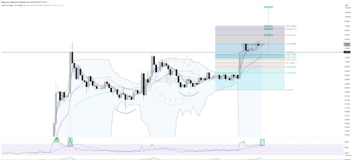 その間、アナリストはXRPの価格が巨大なWパターンのネックライン付近で9か月以上サポートを構築していたと指摘しました。彼はまた、アルトコインが最新のマクロスイングハイからスイングローまでの1.618フィボナッチ拡張値の下で同じ期間を統合していたと付け加えました。