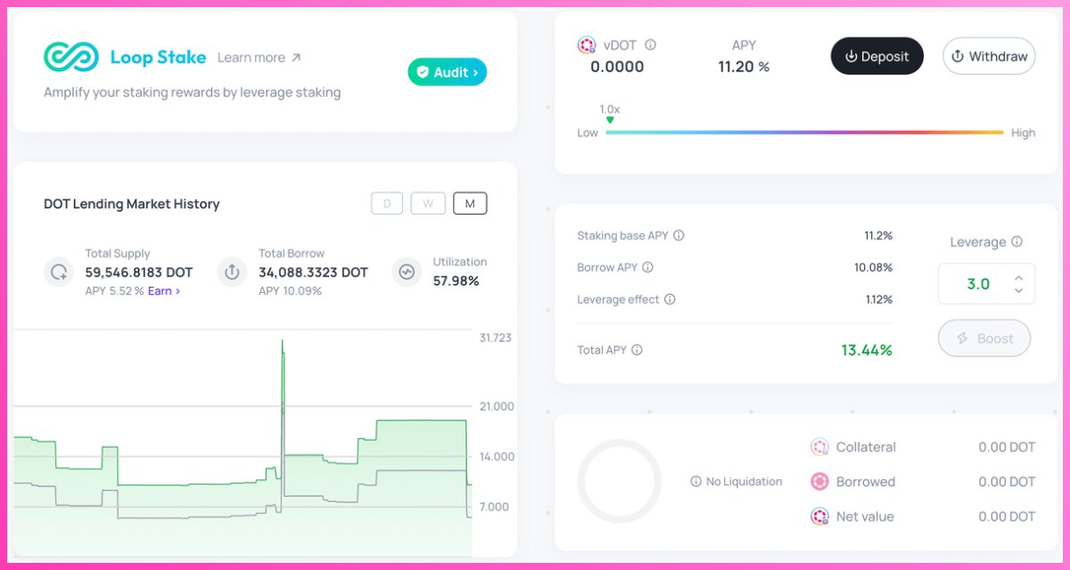 vDOTのステーキング報酬を活用したい方のために、Bifrost LoopStakeはユニークな貸出/借入ループメカニズムを提供します。以下は主な特徴です:
