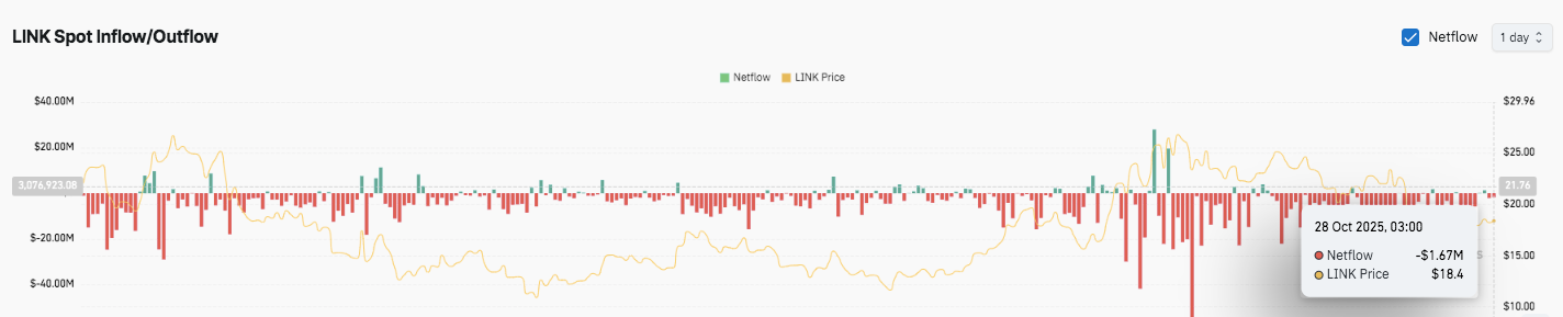 技術的には、LINKは100日および200日EMAの間で収束範囲を形成しており、今後のボラティリティの拡大を示唆しています。このような圧縮フェーズにおける過去の挙動は、しばしば重要な方向性の動きの前触れとなっていました。