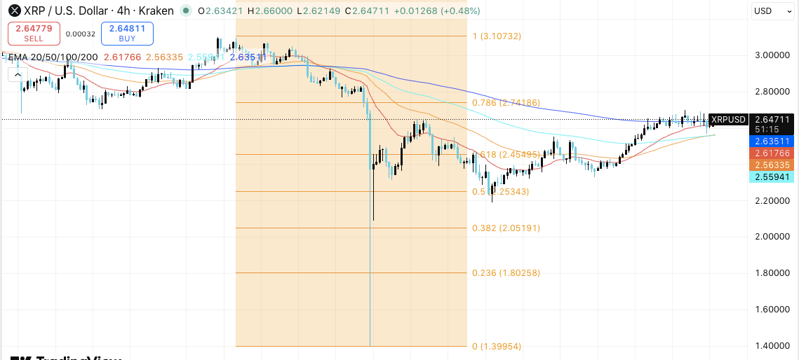 XRP市場は、$1.39の安値からの数週間の回復を受けて、$2.45近くの重要なサポートを買い手が守る中、再び強さを示しています。最近の反発は、重要なフィボナッチレベルを取り戻しただけでなく、XRPを重要な移動平均の上に位置づけました。