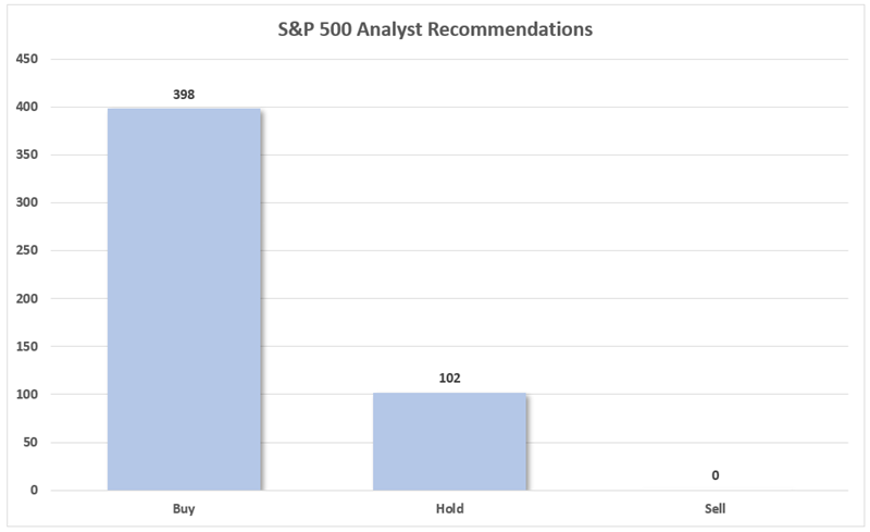 Remember: These ratings generally pertain to the coming 12 months. That’s an astonishingly optimistic view of every single S&P 500 component—especially with this many economic question marks floating around.