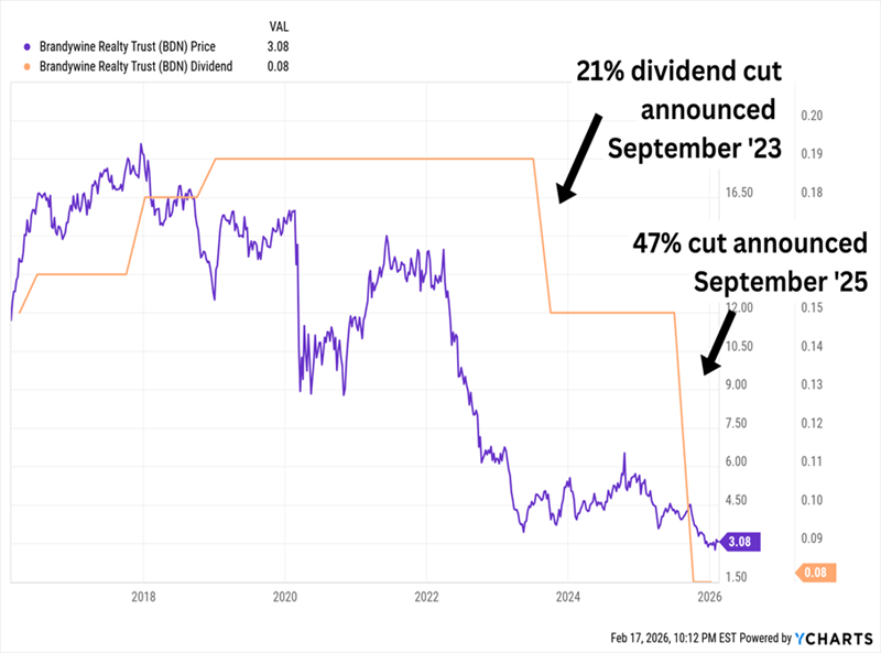 Literally that same week, BDN announced its second dividend reduction in three years. (I wish I’d been wrong on that one!)