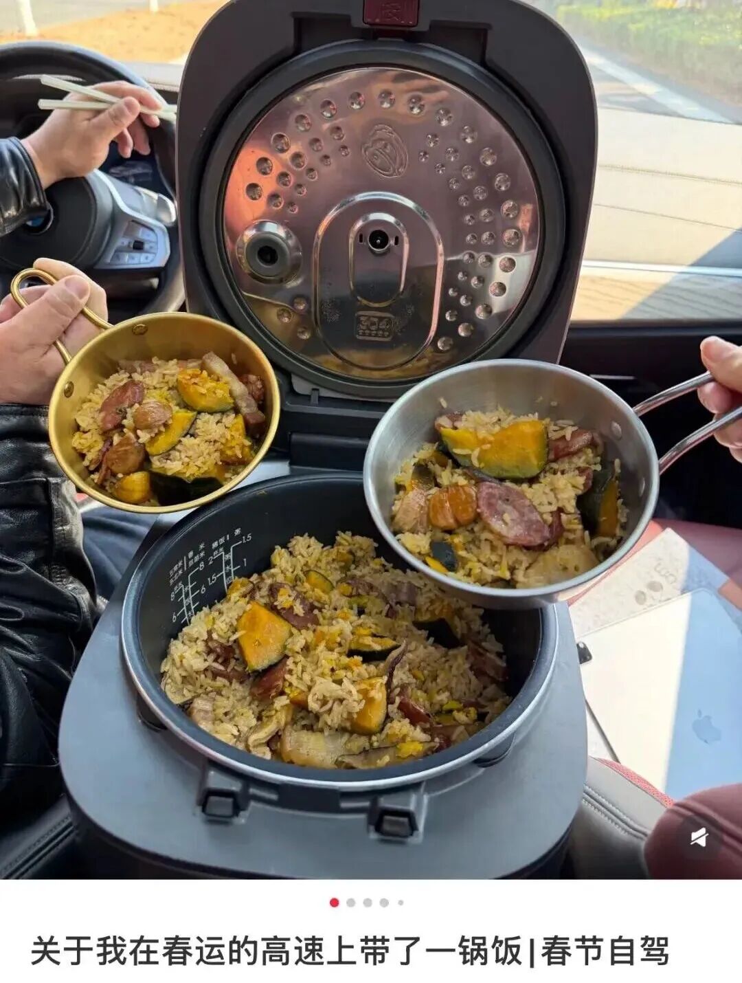 Ms. Huang from Zhejiang used a steaming hot rice cooker to cook rice on the road