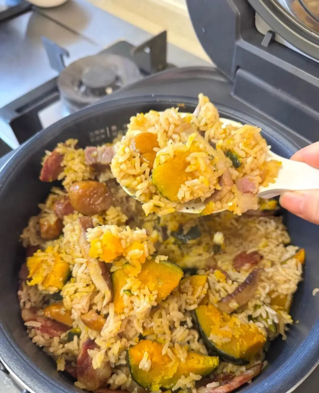 Pre-cooked pumpkin, chestnut, sausage rice
