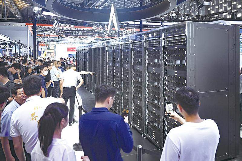 On July 27, visitors at the 2025 World Artificial Intelligence Conference in Shanghai visited the Huawei exhibition area to see the Ascend 384 super node.