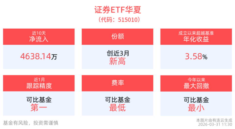 According to statistics, the Huaxia Securities ETF saw a net capital inflow of 2.9628 million yuan in its latest figure. In the past 10 trading days, there were net inflows on 6 days, totaling 46.38 million yuan of “capital pulled in.”