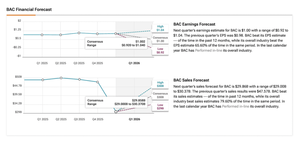 Bank of America BAC +0.61% ▲ heads into Q1 results, expected on April 15, on a strong footing, supported by still-resilient net interest income (NII) and solid underlying fundamentals. However, that support is beginning to weaken as expectations shift toward Federal Reserve rate cuts, raising questions about how long the rate-driven tailwind can last.