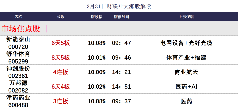 Caixin Media, March 31: Today, 53 stocks hit the daily limit up, 17 hit limit-up but then failed (“broke the board”); the board-closure rate was 76%. Shenjian Co., Ltd. achieved four consecutive limit-ups; Jin Yao Pharmaceutical reached three consecutive limit-ups; Xinnengtai Mountain reached five limit-ups in six days; Shu’a Sports reached five limit-ups in eight days; Wanbangde reached four limit-ups in six days; Datongnan reached three limit-ups in four days; China Railway Materials reached three limit-ups in five days. The market rose sharply throughout the day and then pulled back; both the ChiNext Index and the STAR 50 Index fell by more than 2.5%. The total trading value on both the Shanghai and Shenzhen markets was 1.99 trillion yuan, up by 76.8 billion yuan from the previous trading day. On the trading front, market hotspots rotated in weakness, and more than 4,300 stocks across the whole market closed lower. By sector, sports, high-speed rail track transportation, complete automobiles, and banks led; agriculture, wind-power equipment, lithium batteries, and semiconductors led the declines. By the close, the Shanghai Composite Index fell 0.8%, the Shenzhen Component Index fell 1.81%, and the ChiNext Index fell 2.70%.