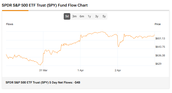 SPY’s five-day net outflows totaled $4 billion, showing that investors pulled capital from the ETF over the past five trading days. Meanwhile, its three-month average trading volume is 89.43 million shares.