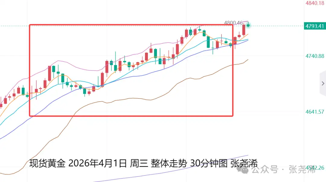 On the previous trading day, Wednesday (April 1): International gold continued to be supported by easing Middle East tensions. The White House also previewed that Trump would deliver a national address, sparking initial hopes that the Middle East conflict could be nearing its end, plus buying pressure, which kept the rebound going and the price closed higher, staying above the 100-day moving average support. Bullish momentum increased, and in the short term gold is still expected to strengthen further to reach the next target at the 60-day moving average resistance of $4,900 or higher.