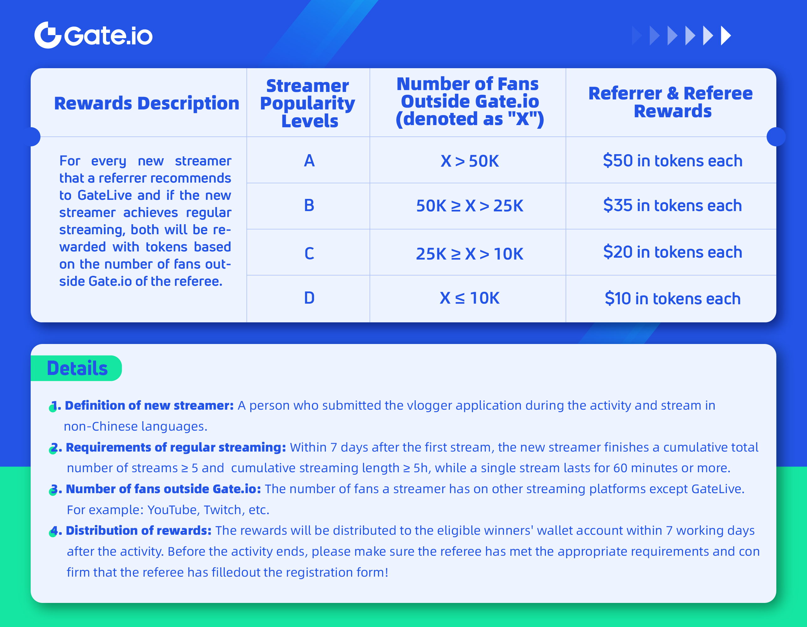 Gate Live Streamer Recruitment Plan · Session 1 was a great success! We are glad to see a list of new streamers joining Gate Live while a total of nearly 100 streamers stream regularly. Moreover, some of these streamers have received $1,000 in rewards for their outstanding performance during Session 1!
