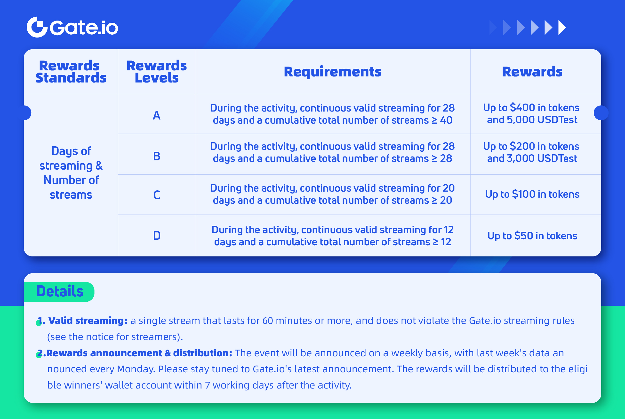Whether you are a new streamer or a returning one, you can receive tokens, USDTest and other rewards if you stay on air during the activity!