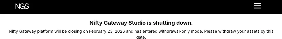 Nifty Gateway, a plataforma de negociação de tokens não fungíveis (NFT) que foi central na explosão de arte digital de 2021, encerrará as suas operações em 23 de fevereiro de 2026.