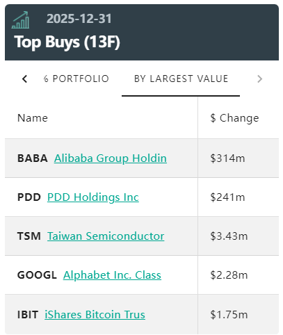 Gigante de centenas de bilhões aumenta significativamente as posições! Exposição das posições do quarto trimestre de 2025 da Hillhouse: aumento de posições na Pinduoduo, Alibaba e outros