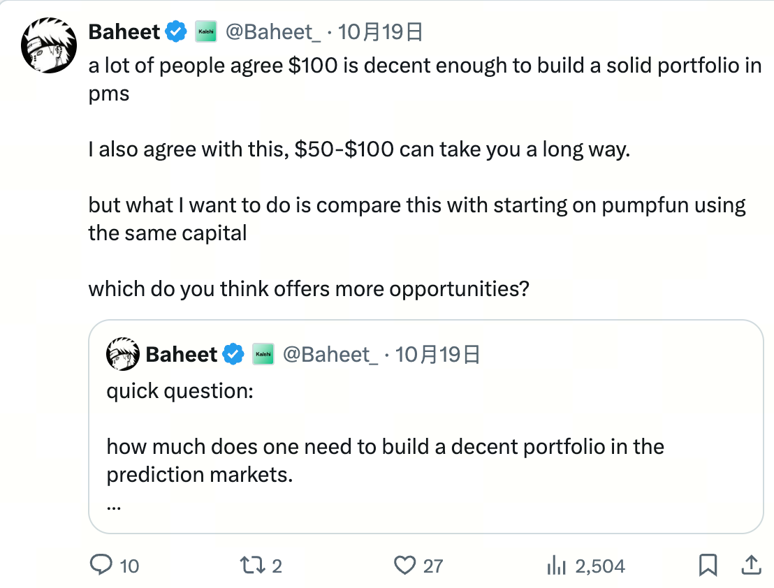 Недавно я задался вопросом: где у трейдера больше шансов — торгуя мемами на pumpfun или спекулируя на prediction markets, особенно если стартовый капитал — всего $100?
