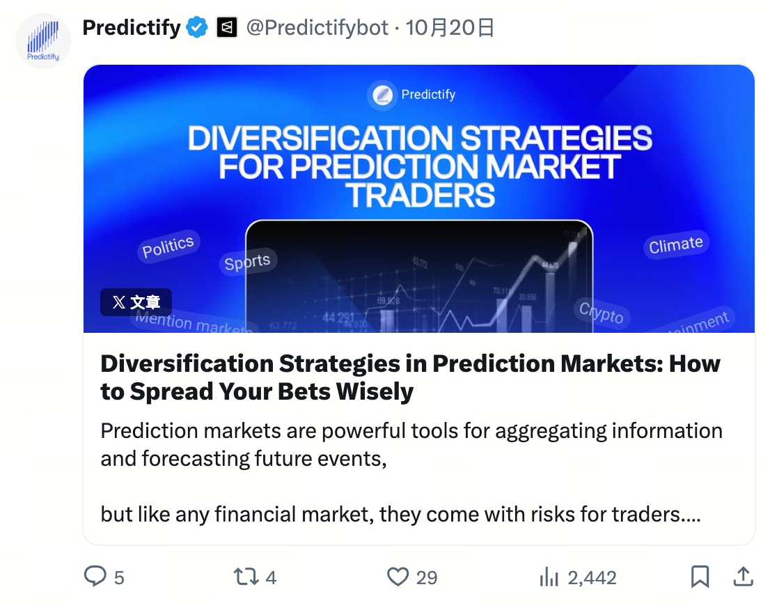 Вот отличная статья от @ Predictifybot о диверсификации prediction market-портфеля.