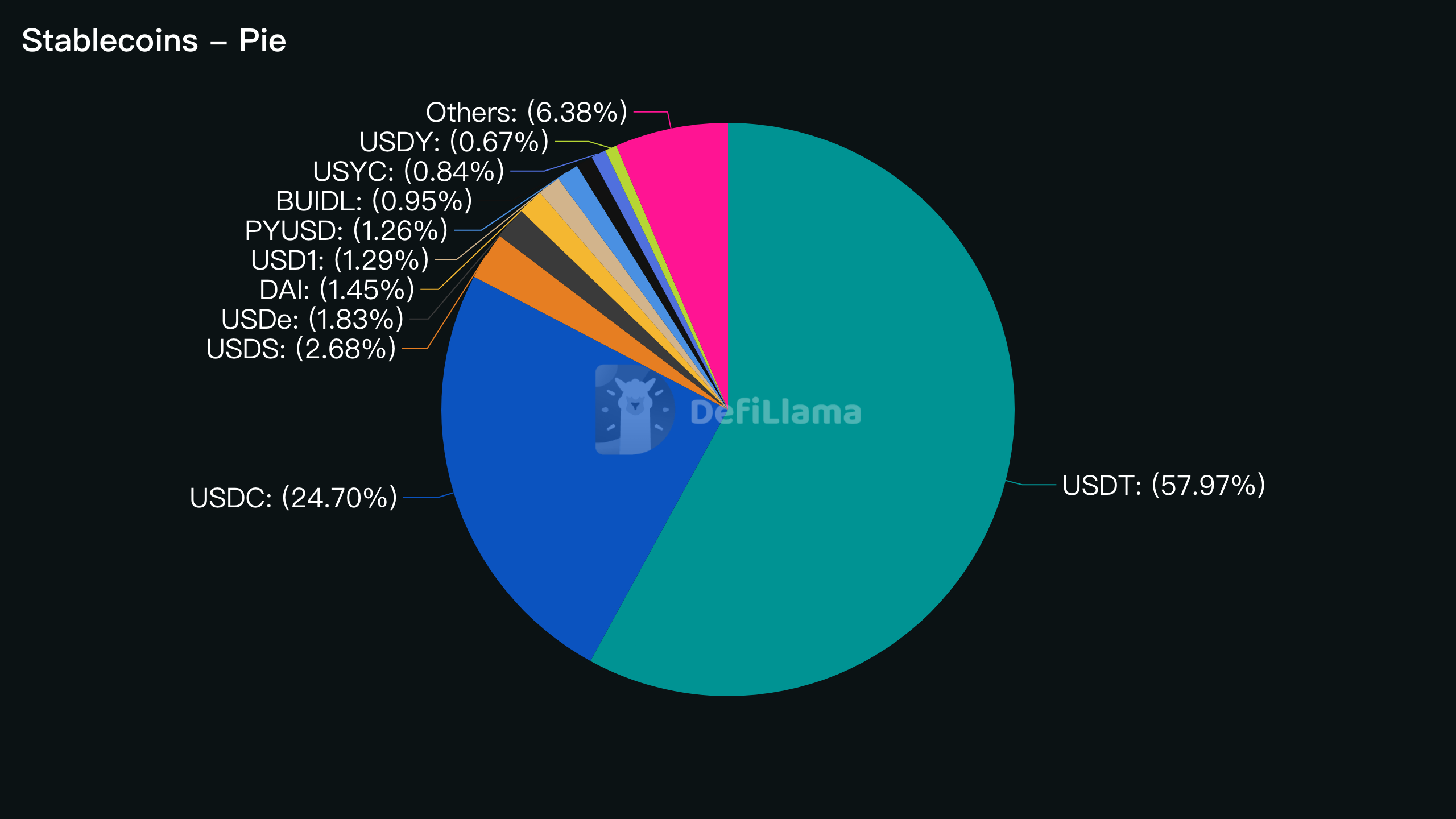 Источник изображения: DefiLlama Tether занимает около 58% рынка стабильных монет