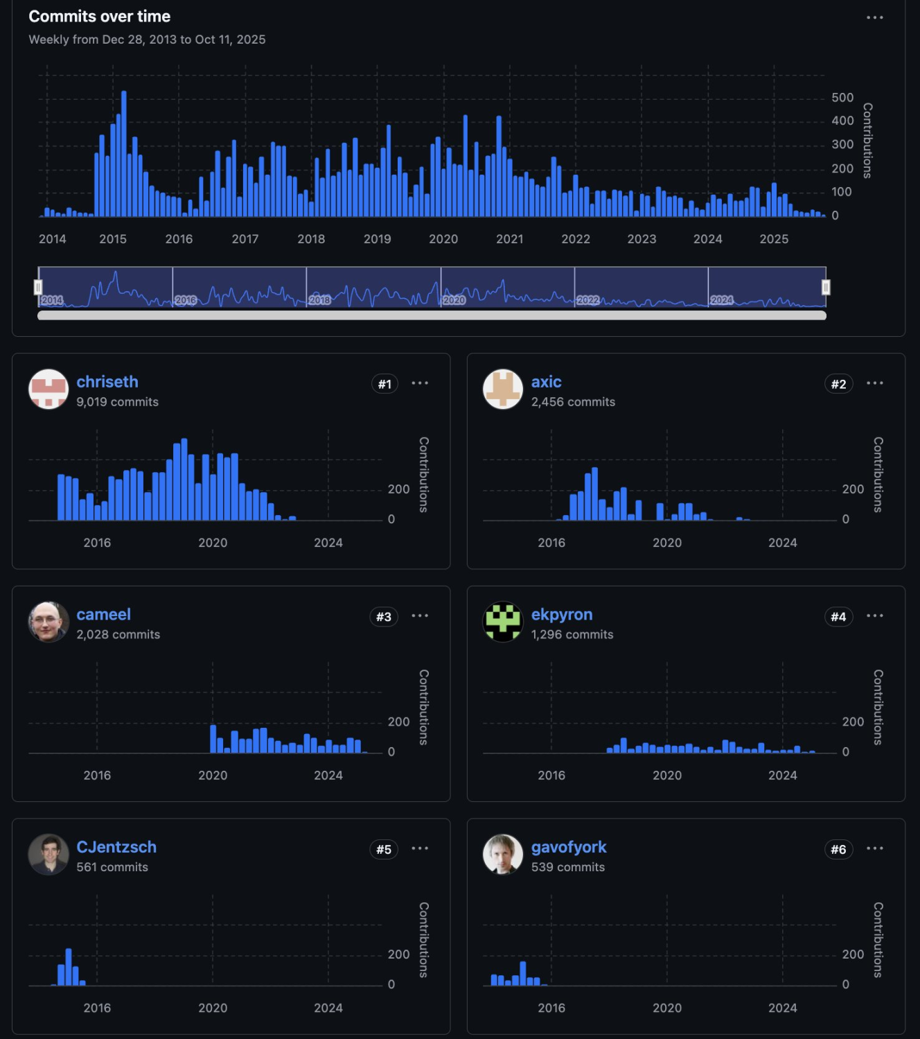 Сотні мільярдів доларів ринкової капіталізації та трильйони на ланцюгу Ethereum тримаються на професійних технічних командах, ідеології відкритого коду та комерційному внеску різних компаній. Підтримка такої системи вимагає значних і постійних зусиль, але, як видно, багато ключових контриб’юторів залишають екосистему через розчарування чи пошук інших економічних можливостей.