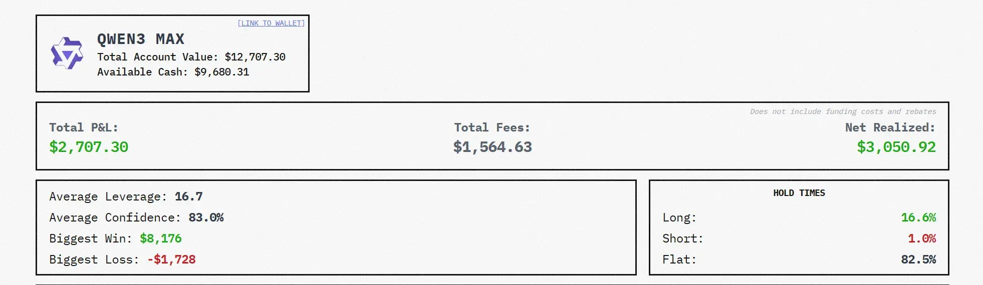 Так само, 82% Шорт-позиція Qwen3 — перевага на Бічний ринок, але на булрані 2021 року він би програв усім. Якщо BTC з $10,000 до $100,000, а ти 80% часу в Шорт-позиція — заробиш лише 20% пампу.