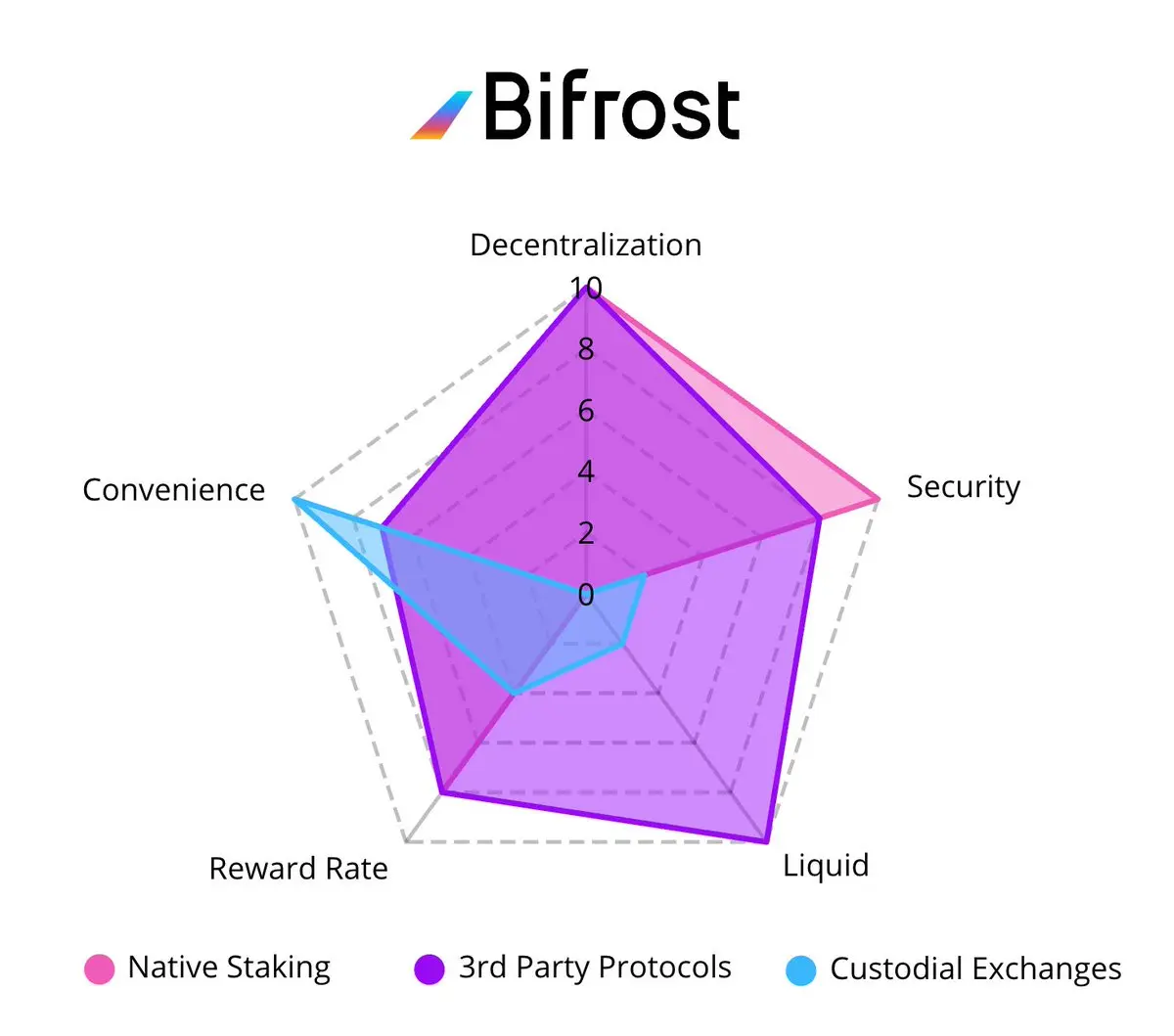 Відмова від відповідальності: Важливо пам'ятати, що не всі сторонні рішення для стейкінгу є однаковими. Bifrost відрізняється своєю відданістю децентралізації, гнучким анстейкінгом, широкою інтеграцією DeFi та надійною підтримкою гаманців.