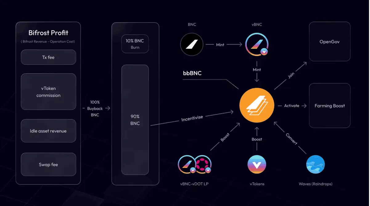 Протягом років нативний токен Bifrost, $BNC, відігравав важливу роль в управлінні, сплаті комісій за транзакції, фінансуванні діяльності казначейства та наданні страхування від штрафів. Однак, незважаючи на свою корисність, $BNC не мав механізму для прямого генерування або захоплення вартості для своїх ходлерів, окрім прав голосу. Це обмеження стало дедалі очевиднішим в еру пост-2021 DeFi літа, коли токени без відчутного доходу або механізмів розподілу доходів стикалися зі зниженням довгострокової привабливості.