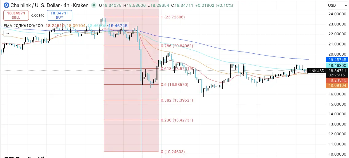 LINK відновлюється поблизу $18.34, сигналізуючи про відновлення бичачого настрою серед трейдерів.