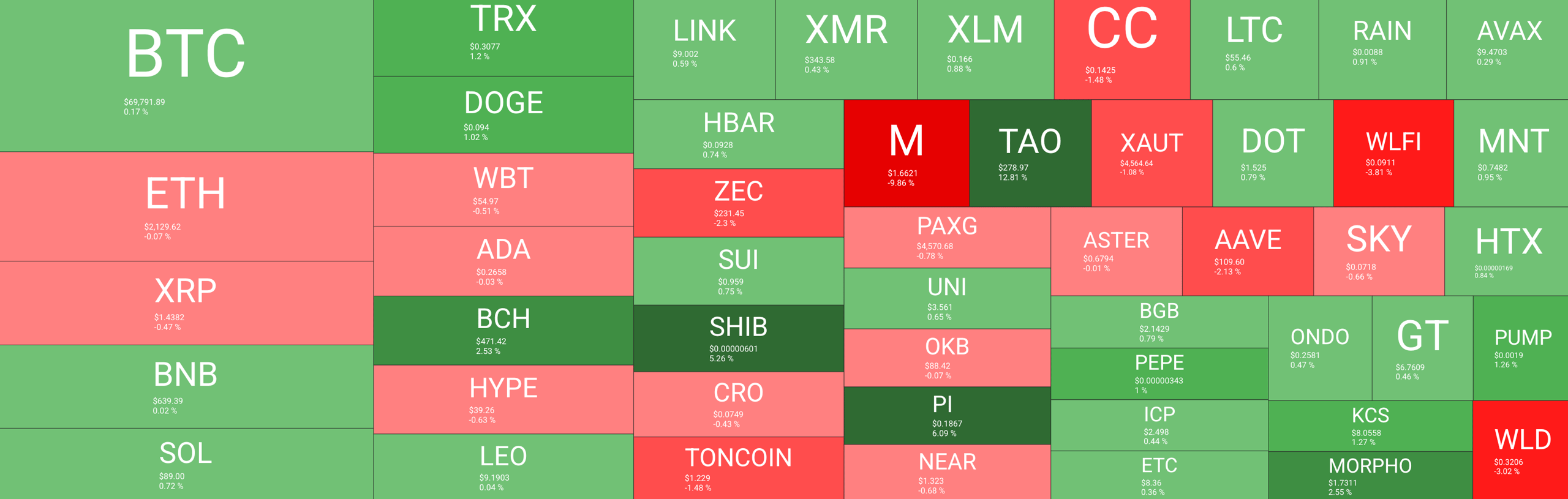 За останні 24 години криптовалютний ринок залишався нестабільним, а настрої й надалі тримаються на рівні «Вкрай страх» згідно з популярним Індексом страху та жадібності Crypto Fear and Greed Index. Загальна ринкова капіталізація скорочується і наразі становить приблизно $2,47 трлн станом на момент публікації.