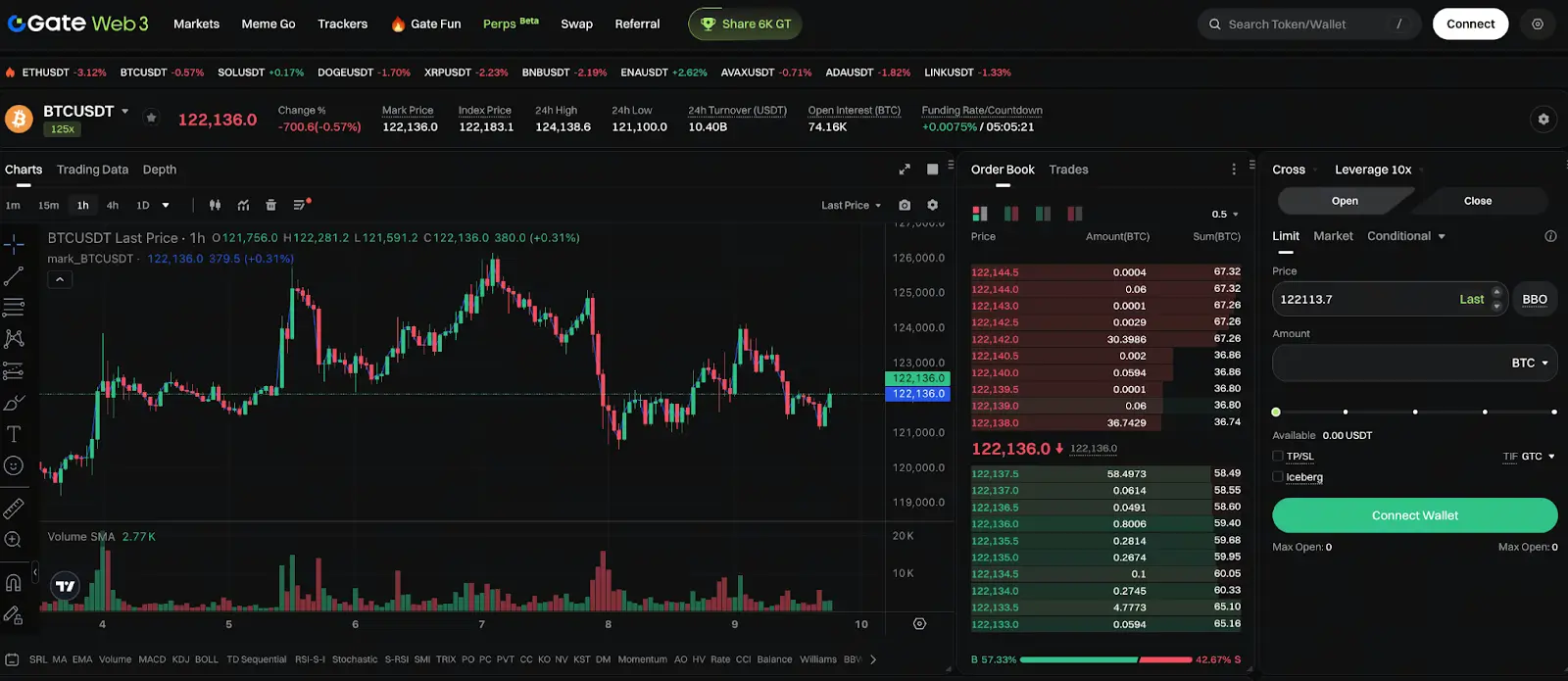 So với các sàn giao dịch tập trung truyền thống, Gate Perp DEX đã phá vỡ các rào cản về địa lý và lòng tin. Nhờ vào công nghệ blockchain, người dùng có thể tận hưởng trải nghiệm giao dịch phi tập trung, không cần tin tưởng bên thứ ba. Nền tảng hỗ trợ giao dịch hợp đồng vĩnh viễn cho nhiều tài sản kỹ thuật số chính như BTC, ETH, BNB và SOL, đáp ứng nhu cầu của các thị trường khác nhau.