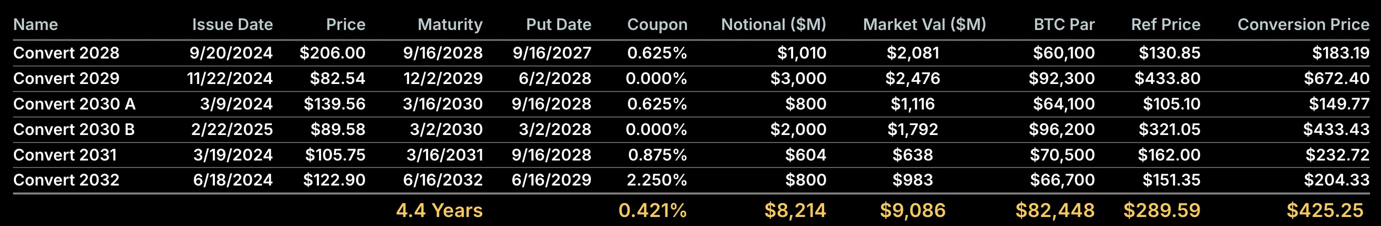 为补充资金,Strategy开始寻求国际市场融资并推出新的融资工具永续优先股(需支付高额股息,8-10%),近期公司通过发行首只欧元计价永续优先股STRE募集资金约7.1亿美元,以支持其战略布局和比特币储备计划。值得一提的是,截至目前,公司有六笔未偿还的可转换债券,但到期日在2027年9月至2032年6月之间。