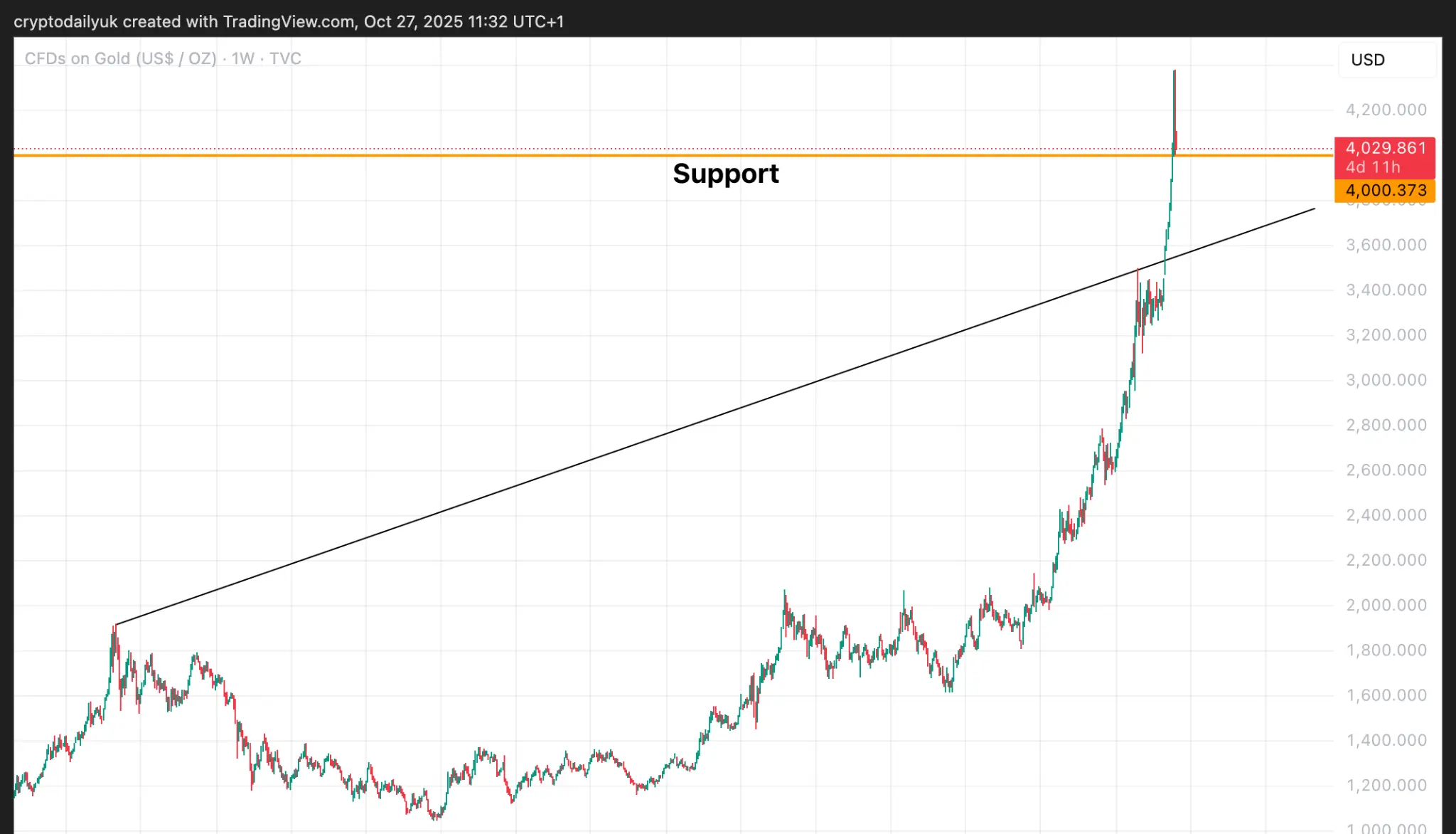 Có vẻ như quyền điều hành đã chuyển từ vàng sang Bitcoin. Vàng đã có một đợt tăng tuyệt vời, đạt mức cao nhất mọi thời đại mới là $4,380, nhưng kể từ khi đạt đỉnh đó, giá đã giảm xuống còn $4,000. Ngược lại, Bitcoin đã đảo chiều kể từ mức cao nhất mọi thời đại $124,000 của nó, nhưng hiện đang đi lên. Liệu động lực của Bitcoin có thể đưa nó vượt qua mức cao nhất mọi thời đại trước đó so với vàng?