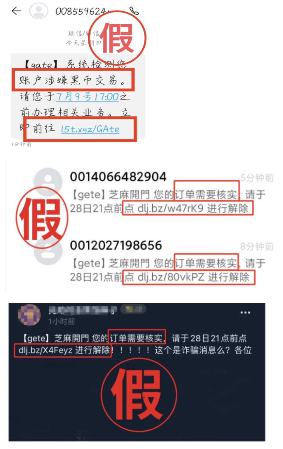 近日,我们收到多名用户反馈,出现不法分子假冒Gate官方或工作人员通过电话、短信、邮箱、QQ等形式实施诈骗(目前此类诈骗手机号来电显示通常为韩国、美国、香港号码)。