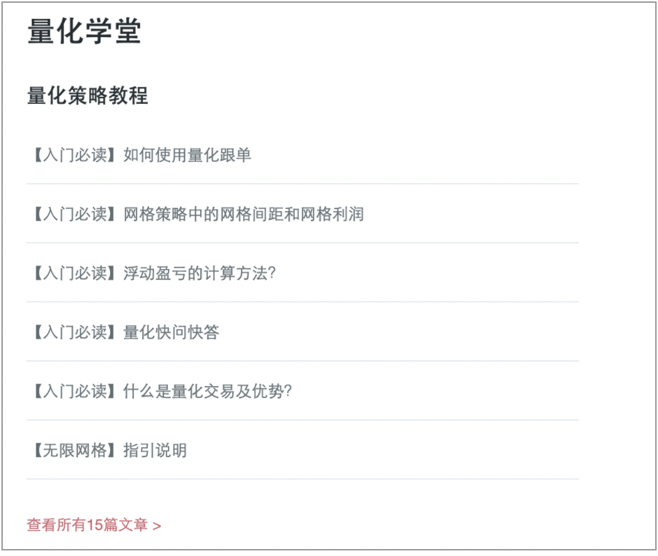 Gate帮助中心量化专栏已更名为“量化学堂”,为各位爱好者提供了从入门到进阶的各项指引文章,用户可以通过【帮助中心】- 【量化学堂】或点击下列链接查看最新的量化学堂帮助文档:https://www.gateex.org/cn/help/quants