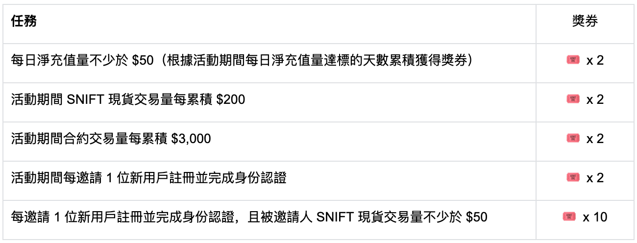 活動期間完成任意任務獲得獎券,最終根據活動期間累積的獎券張數,瓜分獎勵,總獎池 $8,000!
