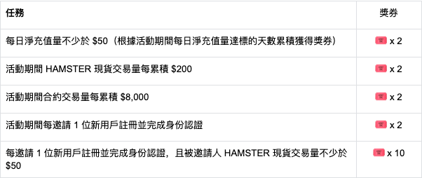 活動期間完成任意任務獲得獎券,最終根據活動期間累積的獎券張數,瓜分獎勵,總獎池 $18,000!