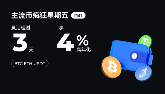 Gate 理財寶每週五上線“主流幣瘋狂星期五”活動,新老用戶一鍵參與即可享受主流幣定期理財短期高利率福利。本期活動幣種有 BTC/ETH/USDT,理財週期短至 3 天,收益率高達 4%!認購額度有限,先到先得!
