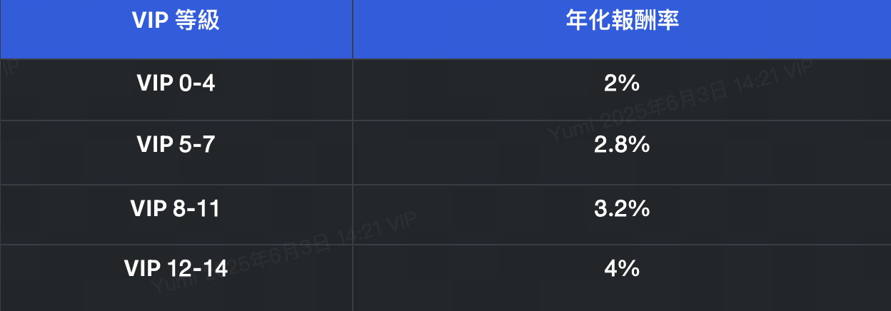 VIP 等級越高,收益越高!立即升級,解鎖更高年化!